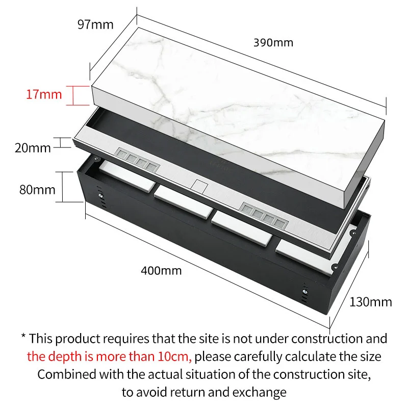 (например, плитка, дерево, камень), позволяя панели сокета соответствовать вашему декору